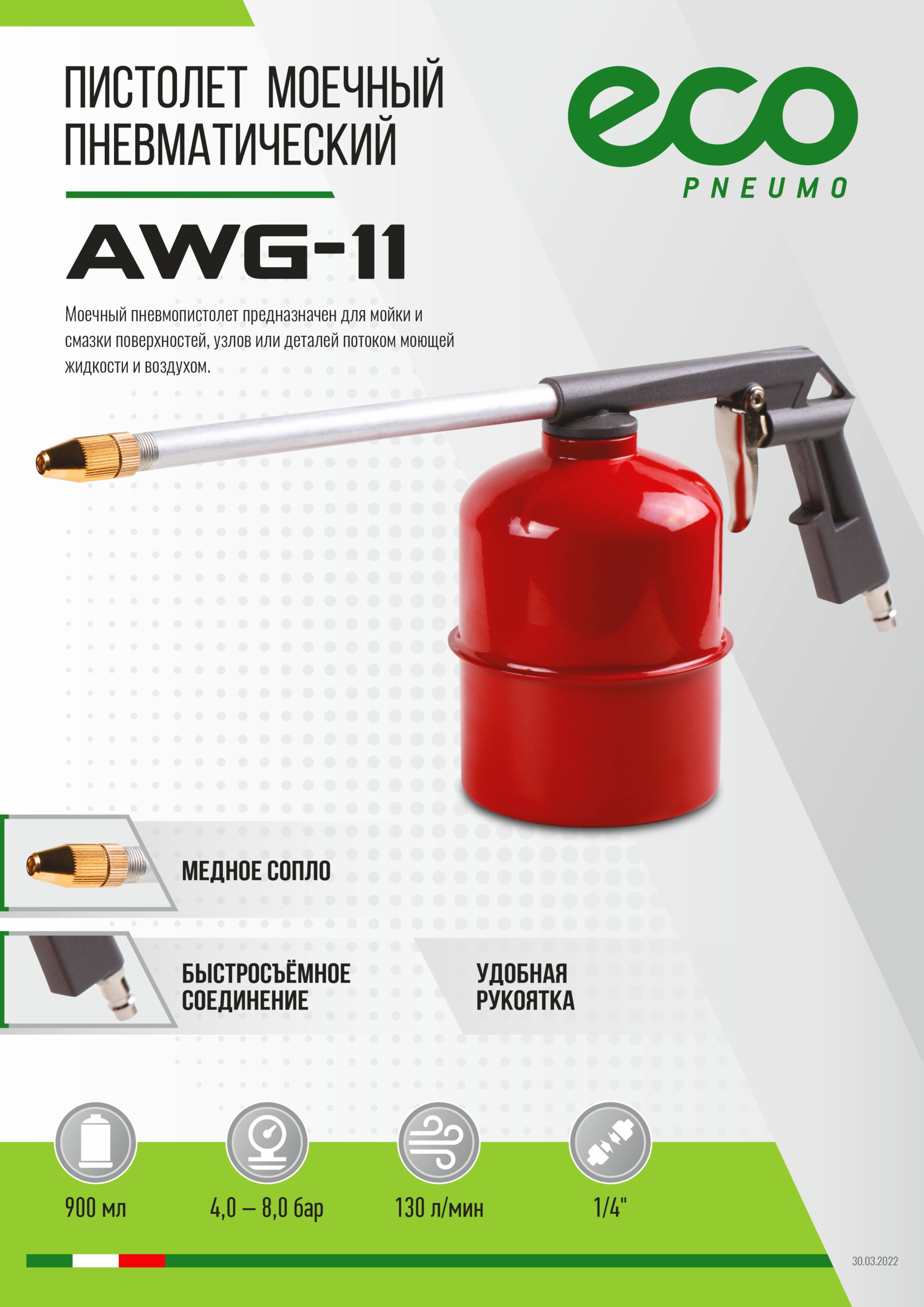 Пистолет моечный пневматический ECO AWG-11 (130 л/мин; бак:900 мл; 4-8 бар)