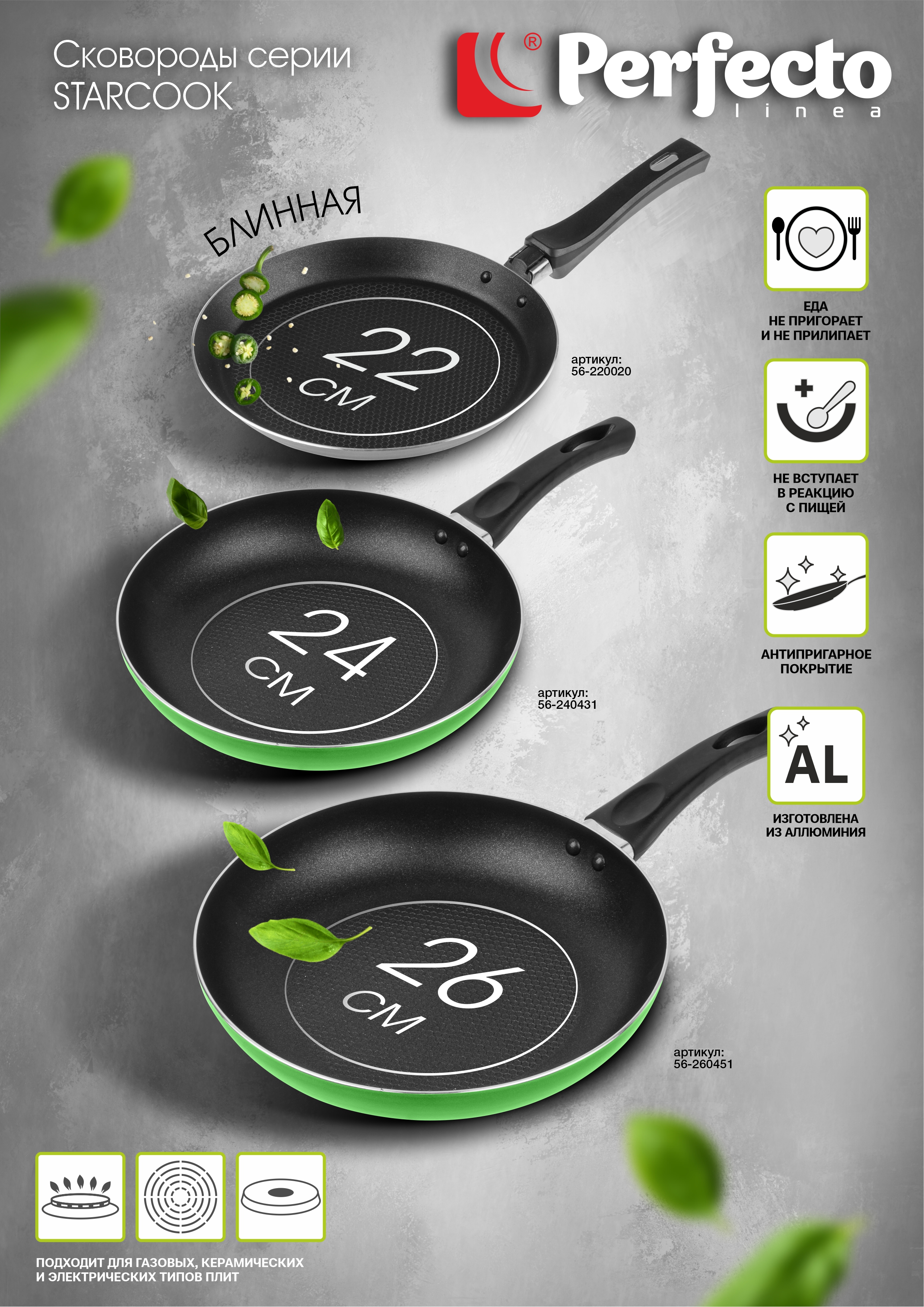 Сковорода блинная ф 22х2.0 см, штамп., алюм., антиприг. покр., серия STARCOOK, PERFECTO LINEA