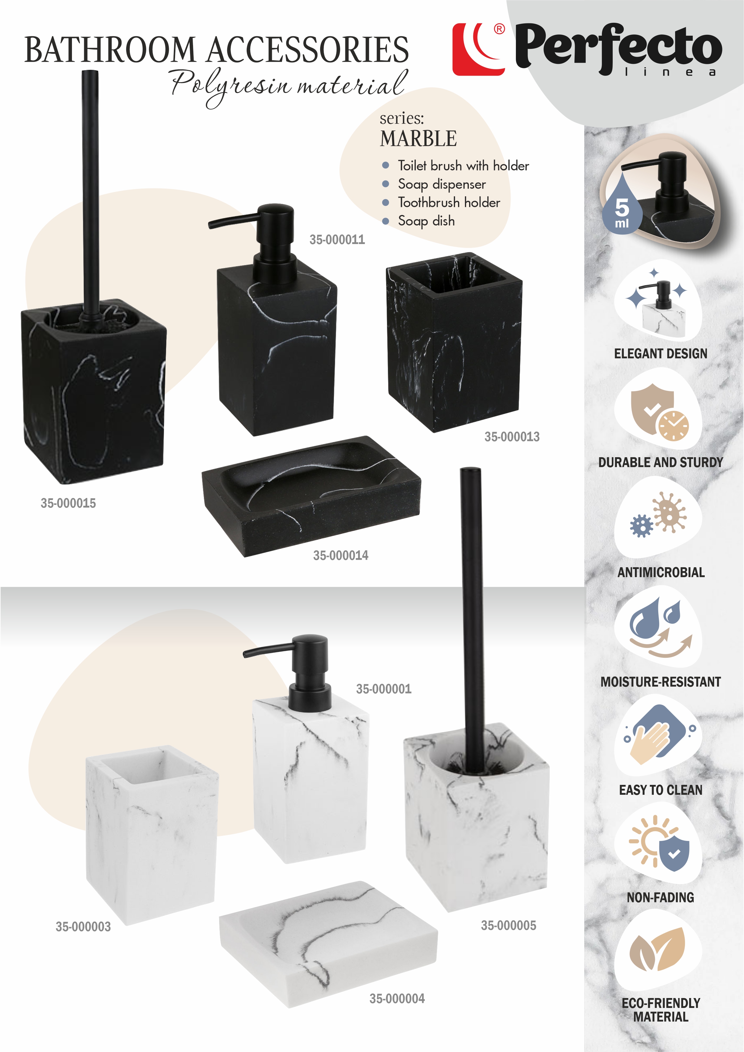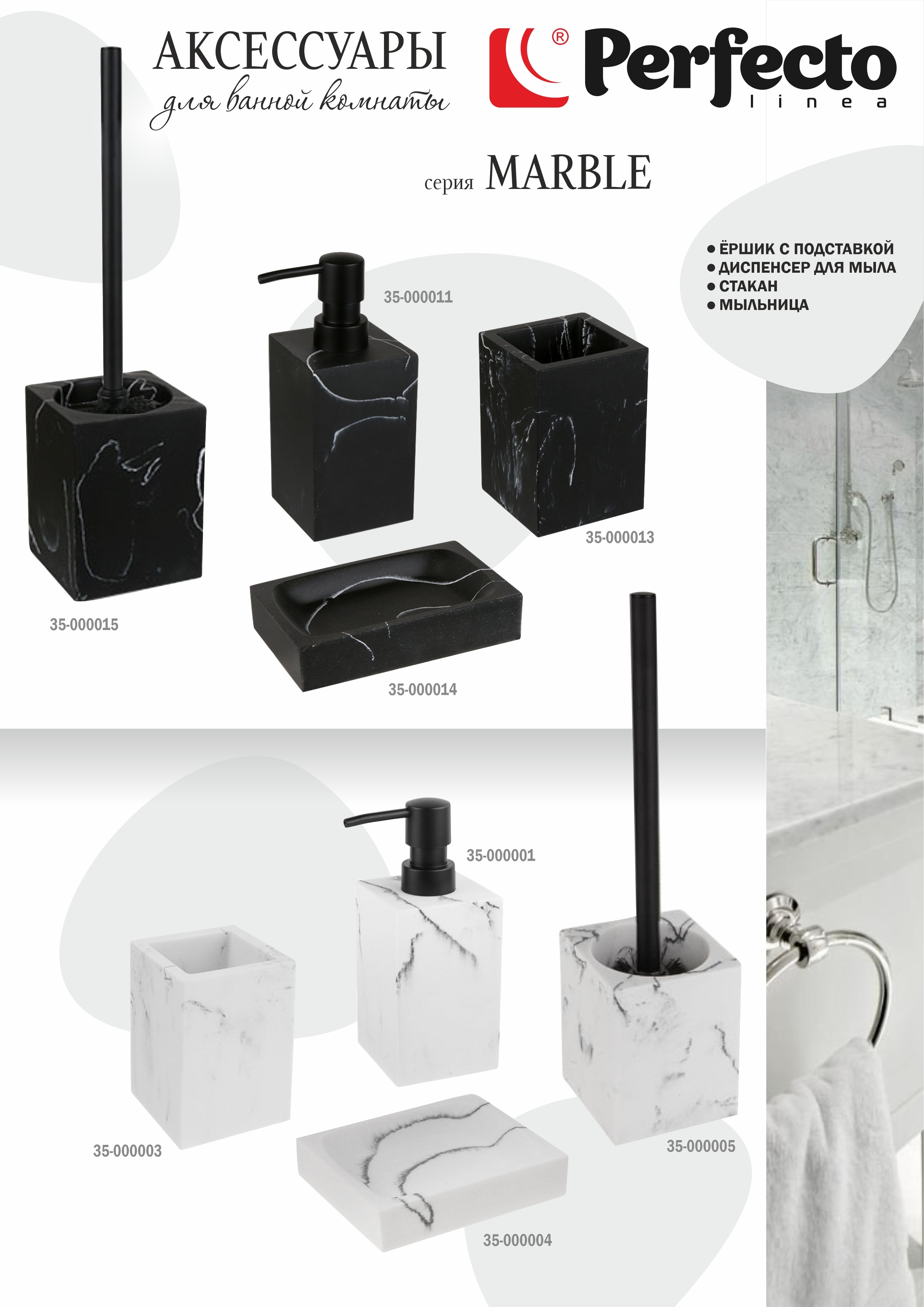 Диспенсер (дозатор) для мыла MARBLE, белый, PERFECTO LINEA (Композитный материал: полирезин под натуральный камень)