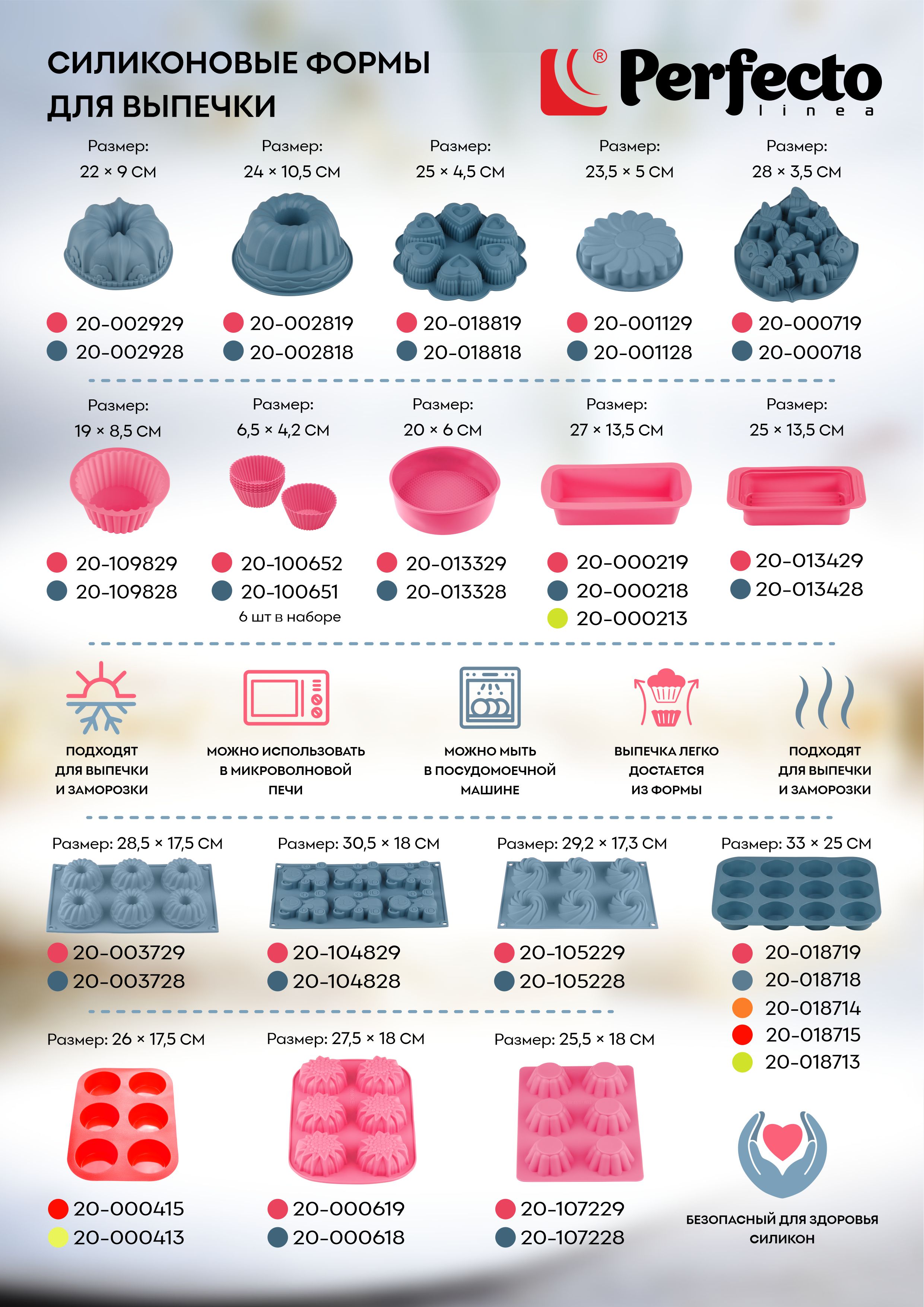 Форма для выпечки, силиконовая, прямоуг. на 6 кексов, 25.5 х 18 х 3 см, FRUIT DOVE, PERFECTO LINEA