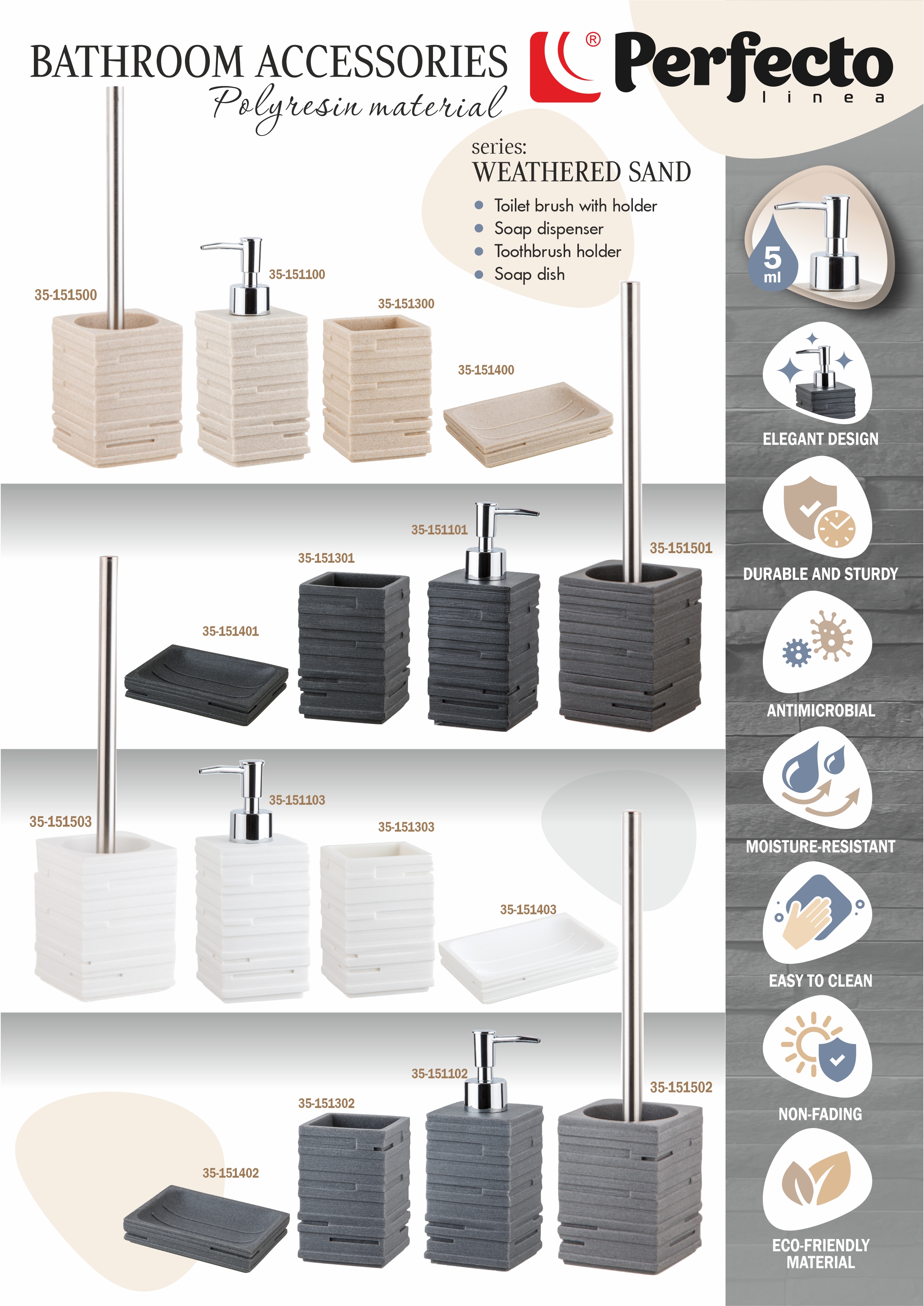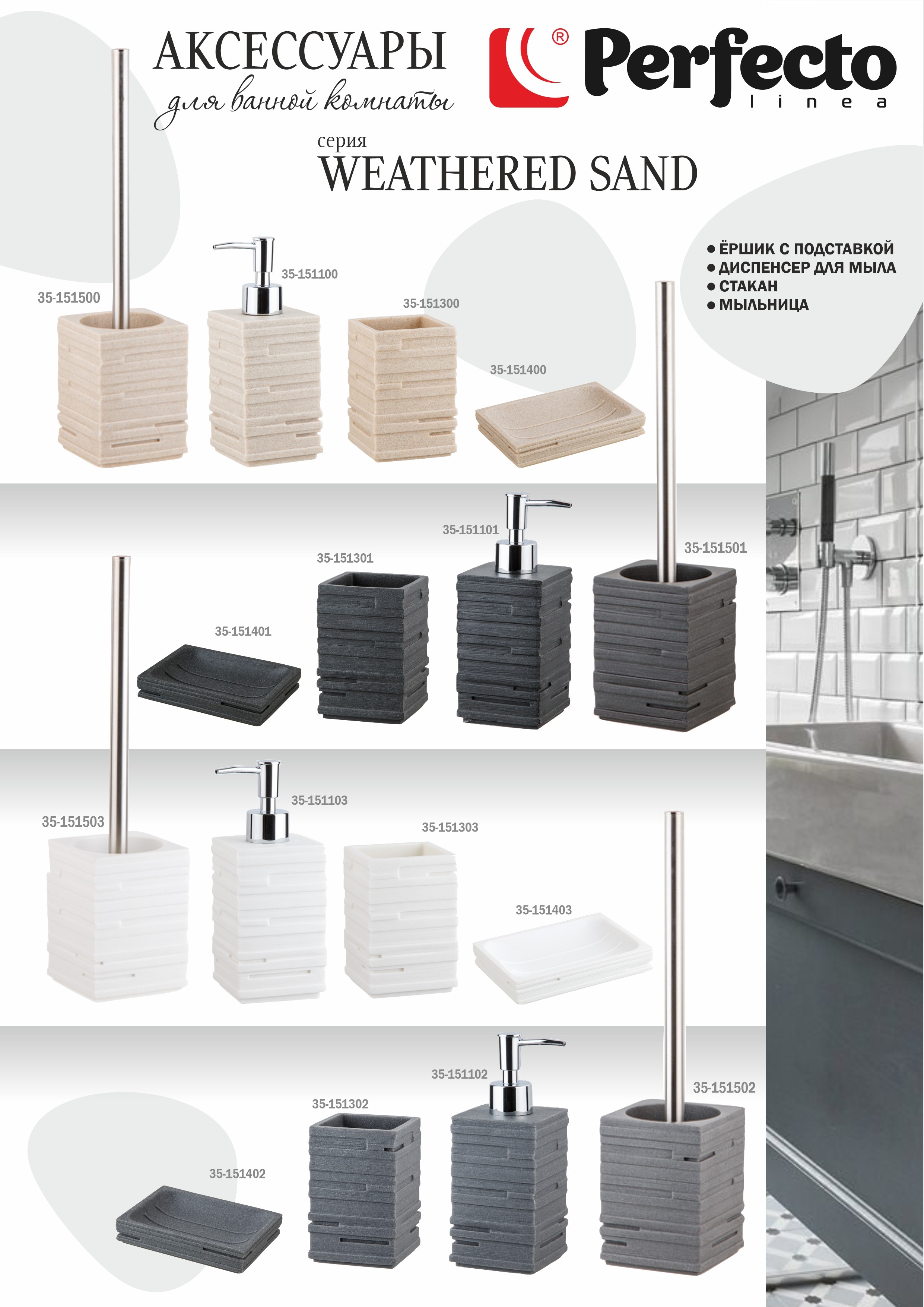 Ершик с подставкой WEATHERED SAND, черный, PERFECTO LINEA (Композитный материал: полирезин под натуральный камень)