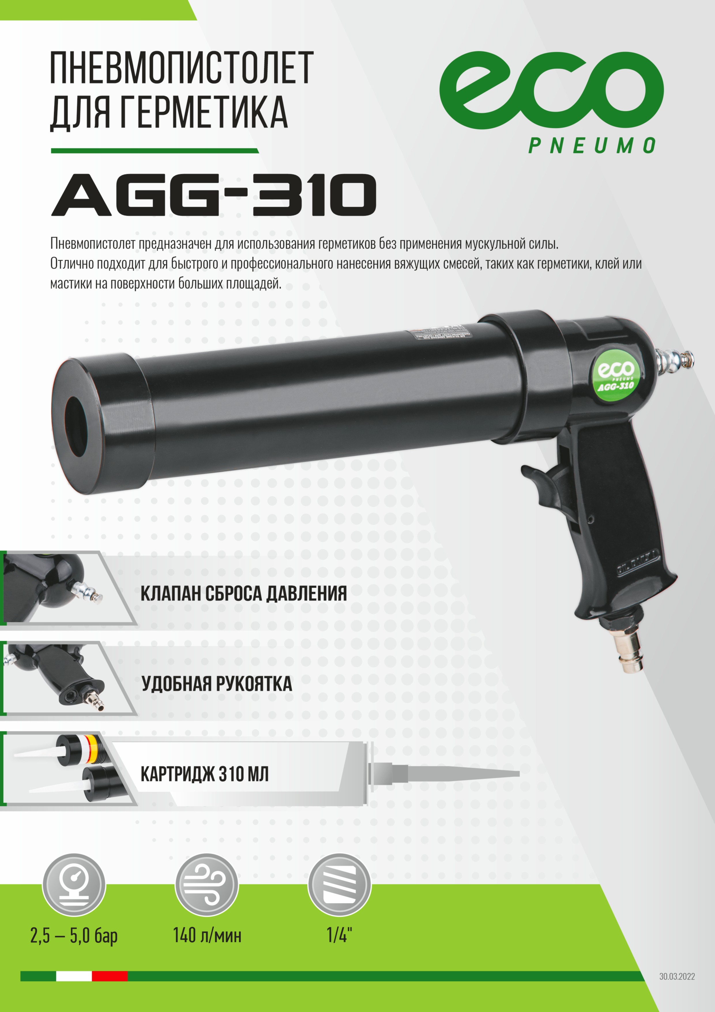 Пневмопистолет для герметика ECO AGG-310 (Картридж: 310 мл; 140 л/мин)