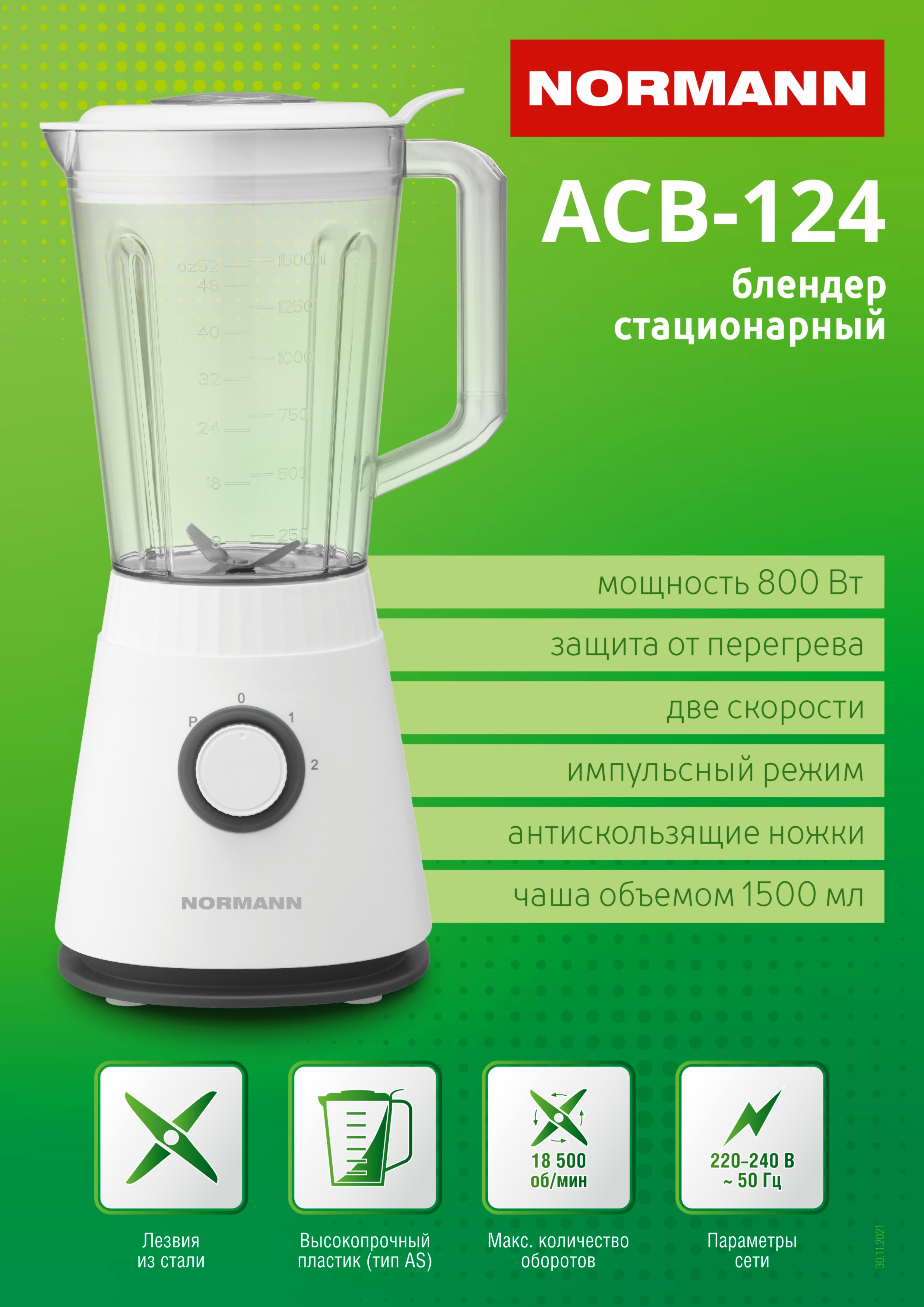 Блендер стационарный ACB-124 NORMANN (800 Вт; 2 скор.+ пульс; пластиковая чаша 1,5 л)