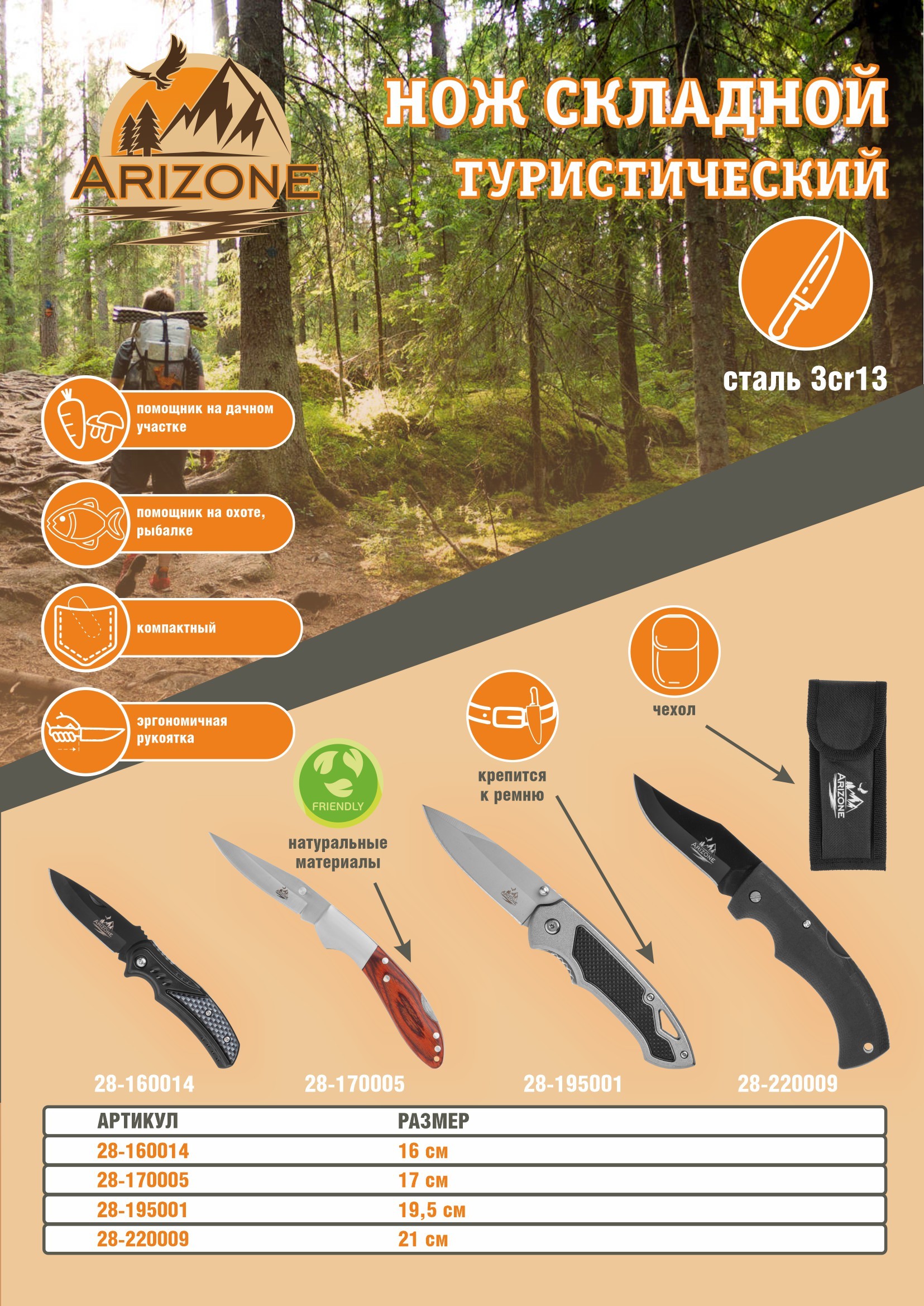 Нож складной туристический, 16 см, блистер, ARIZONE