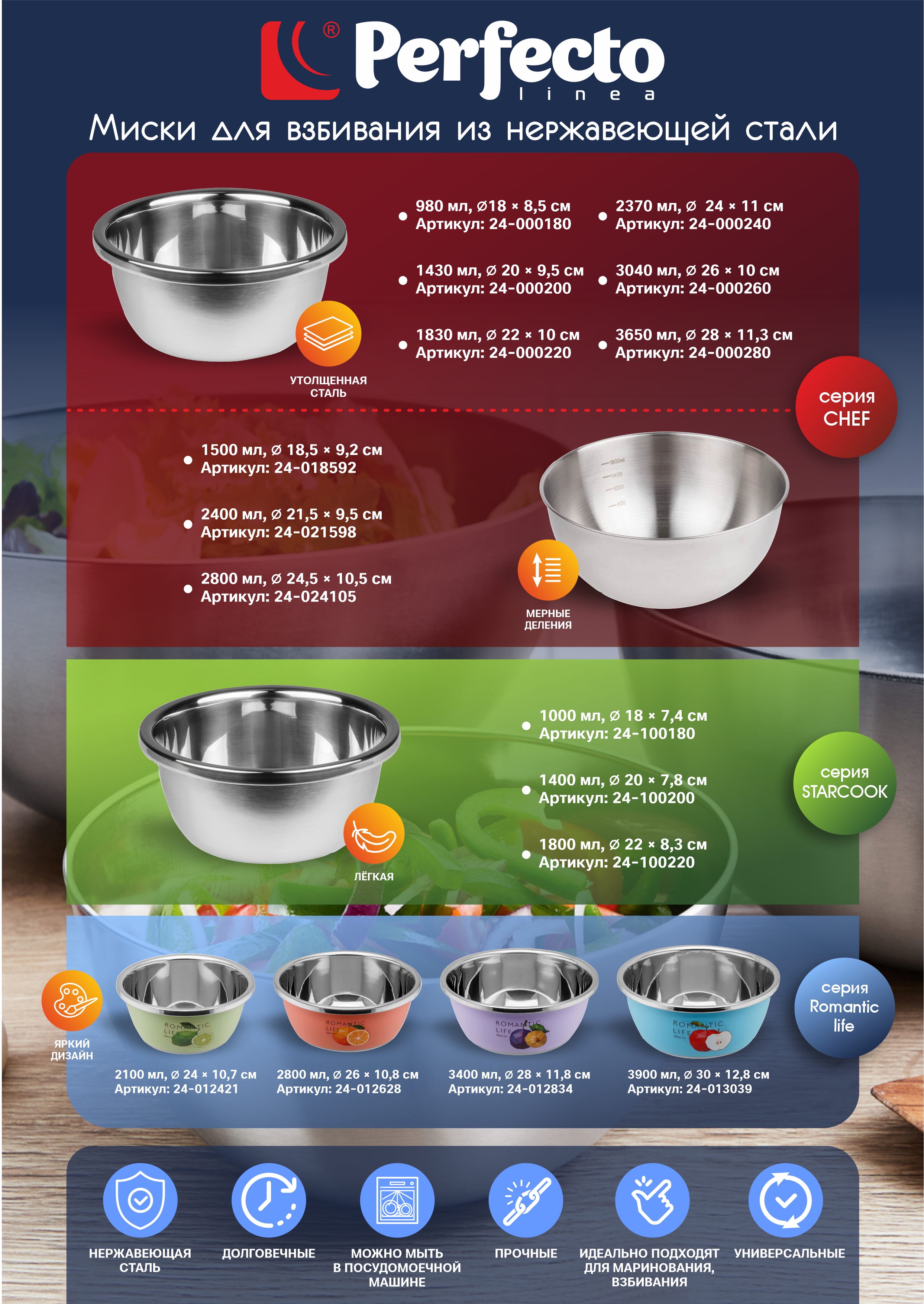 Миска для взбивания из нержавеющей стали, диаметр 24 см, лайм, серия Romantic life, PERFECTO LINEA