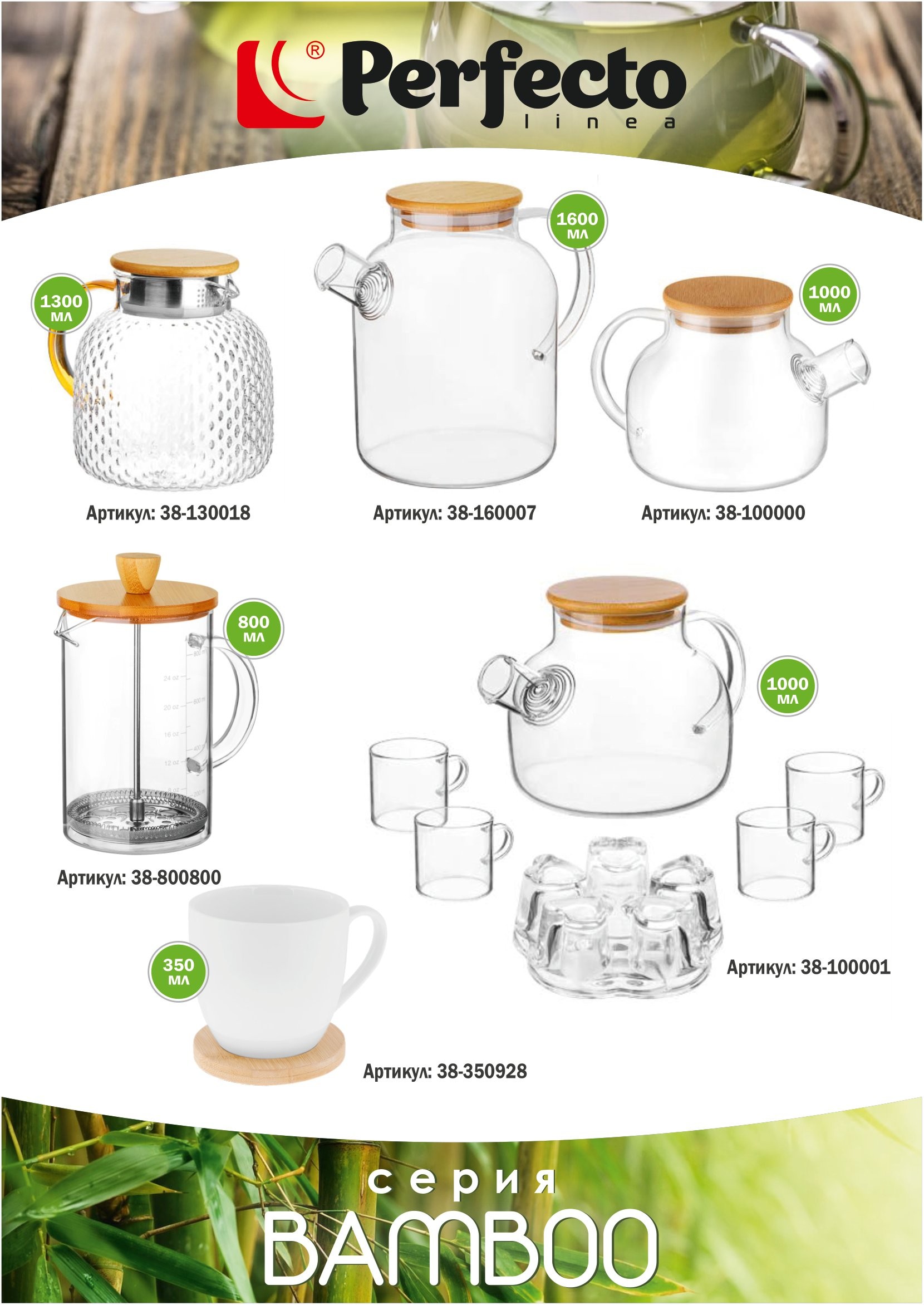 Чайник заварочный, стеклянный, 1600 мл, BAMBOO, PERFECTO LINEA