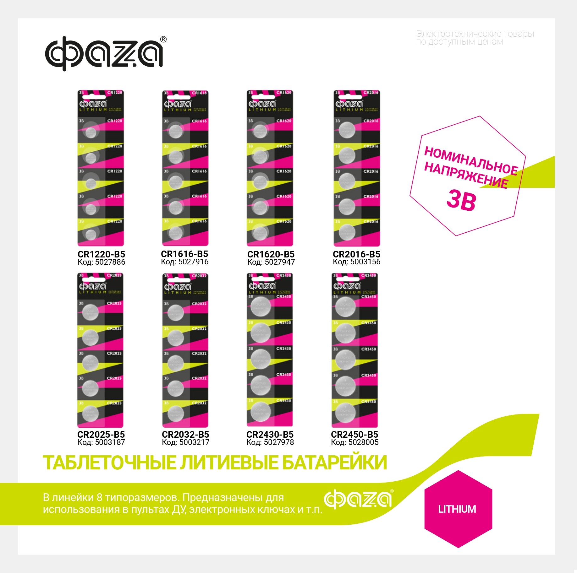 Батарейка CR2430 3V lithium 5 шт (блистер) ФАZА (Литиевая)