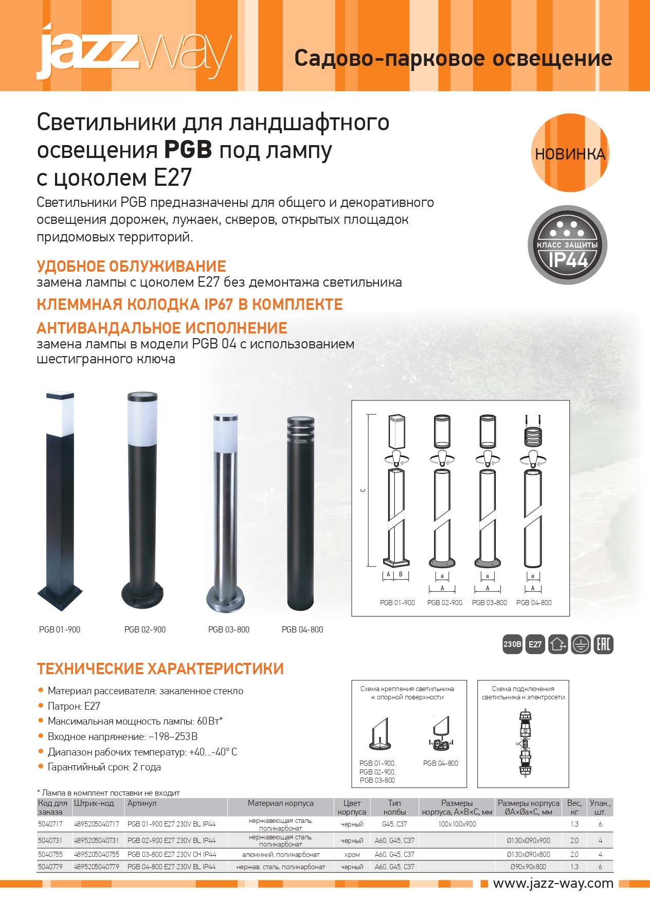 Светильники PGB предназначены для общего и декоративного освещения дорожек, лужаек, скверов, открытых площадок придомовых территорий.