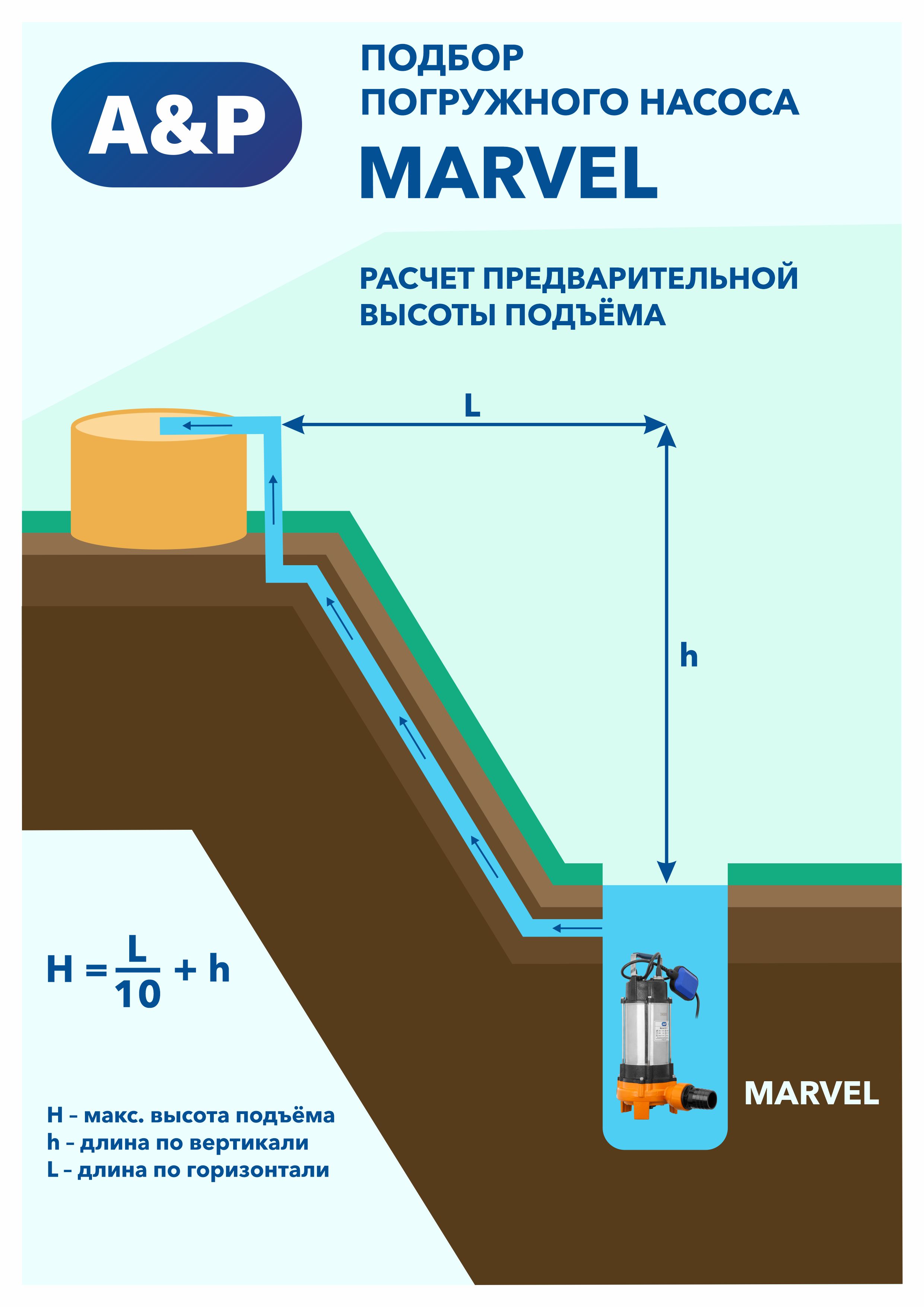 - Максимальная высота напора