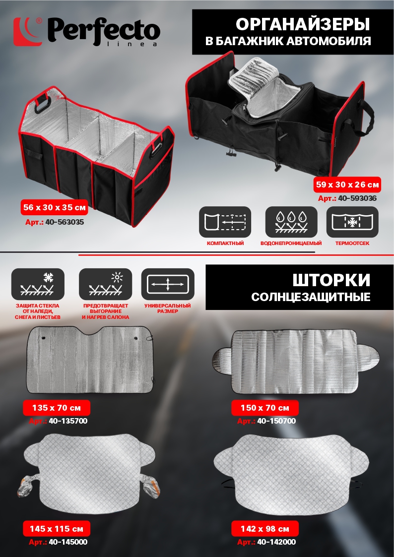 Органайзер в багажник автомобиля, складной, 56х30х35 см, PERFECTO LINEA
