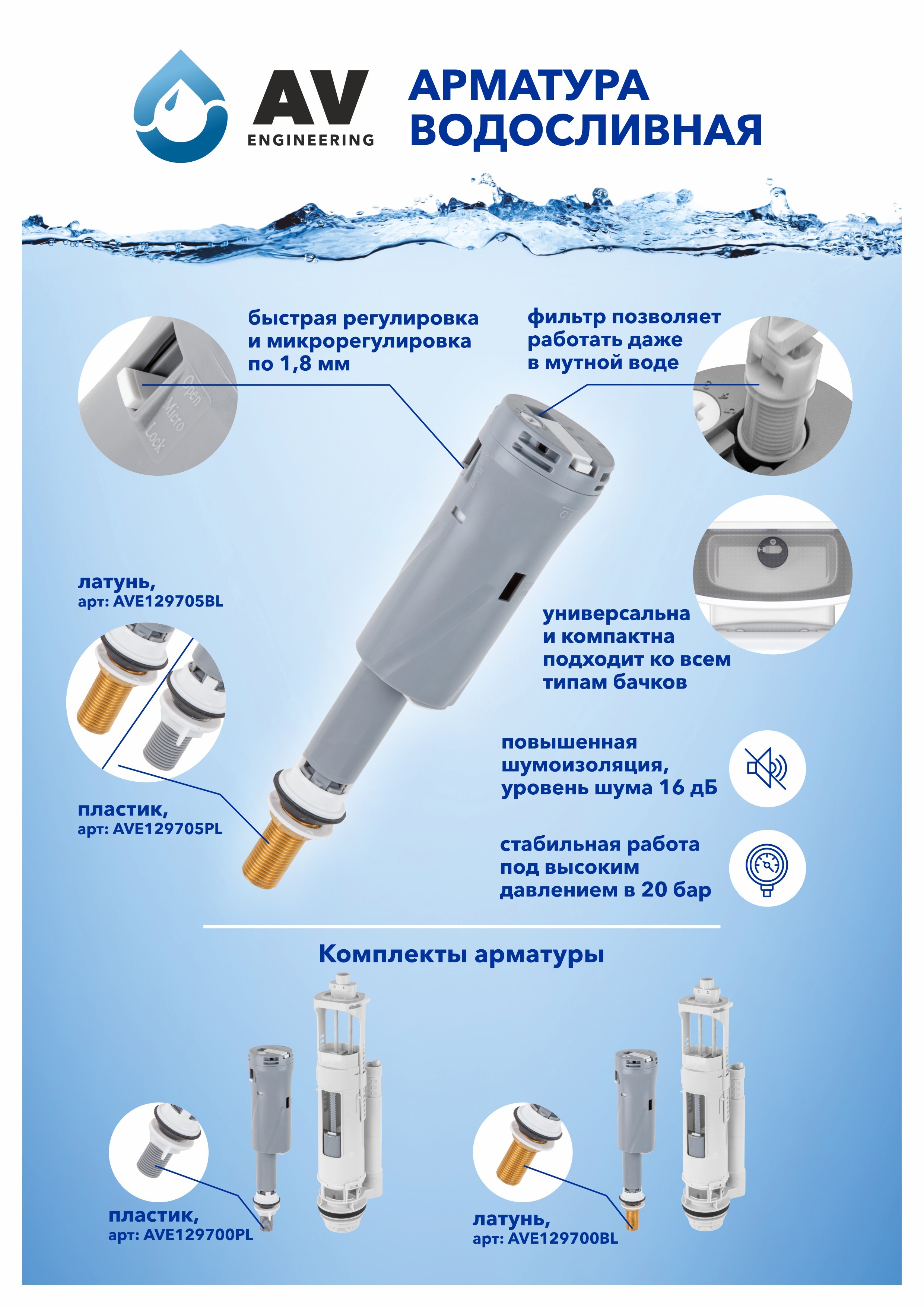 Впускной механизм с нижней подачей 1/2", AV Engineering (Латунь, Гарантия 5 лет)