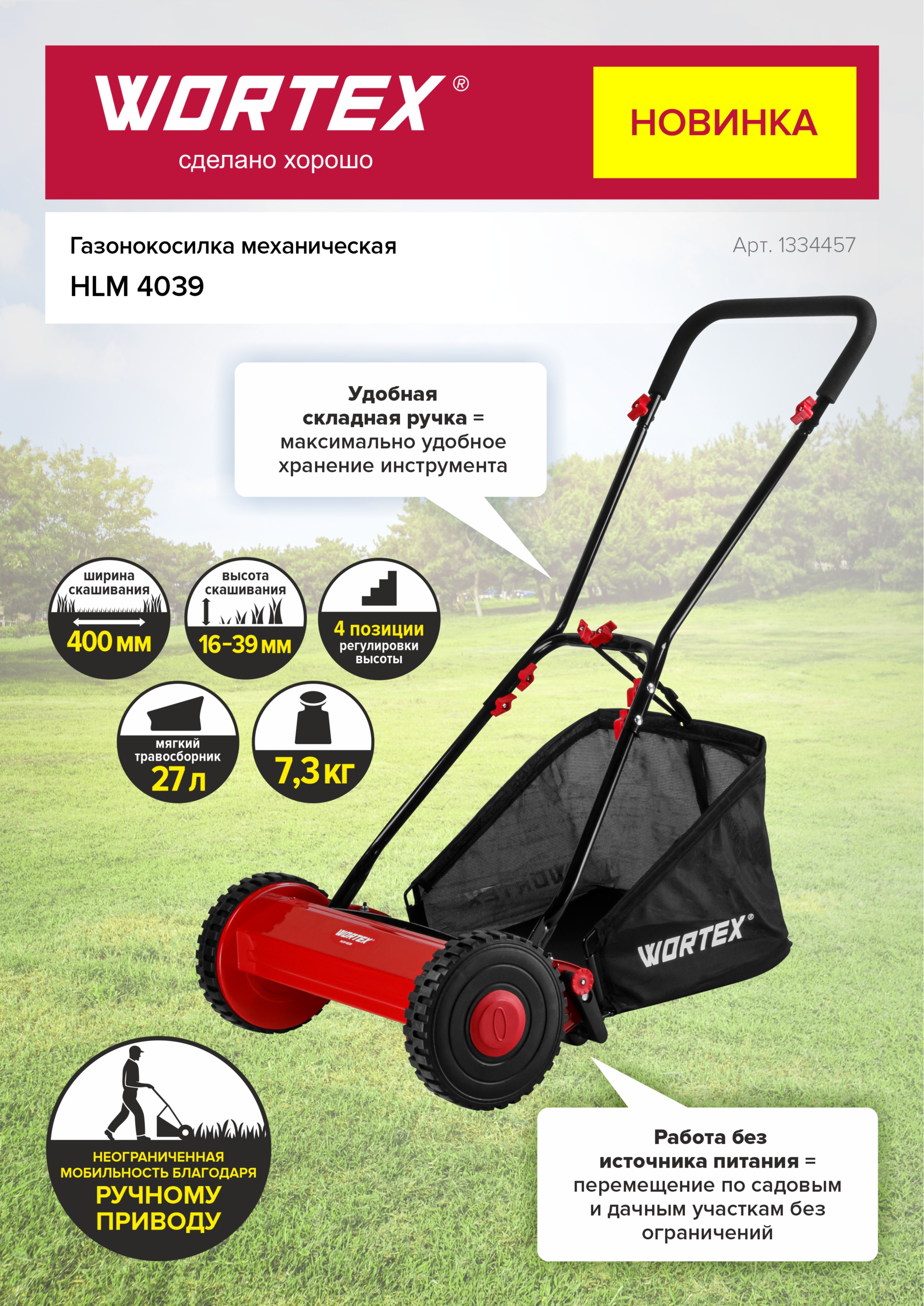 Газонокосилка механическая WORTEX HLM 4039 шир. 400 мм