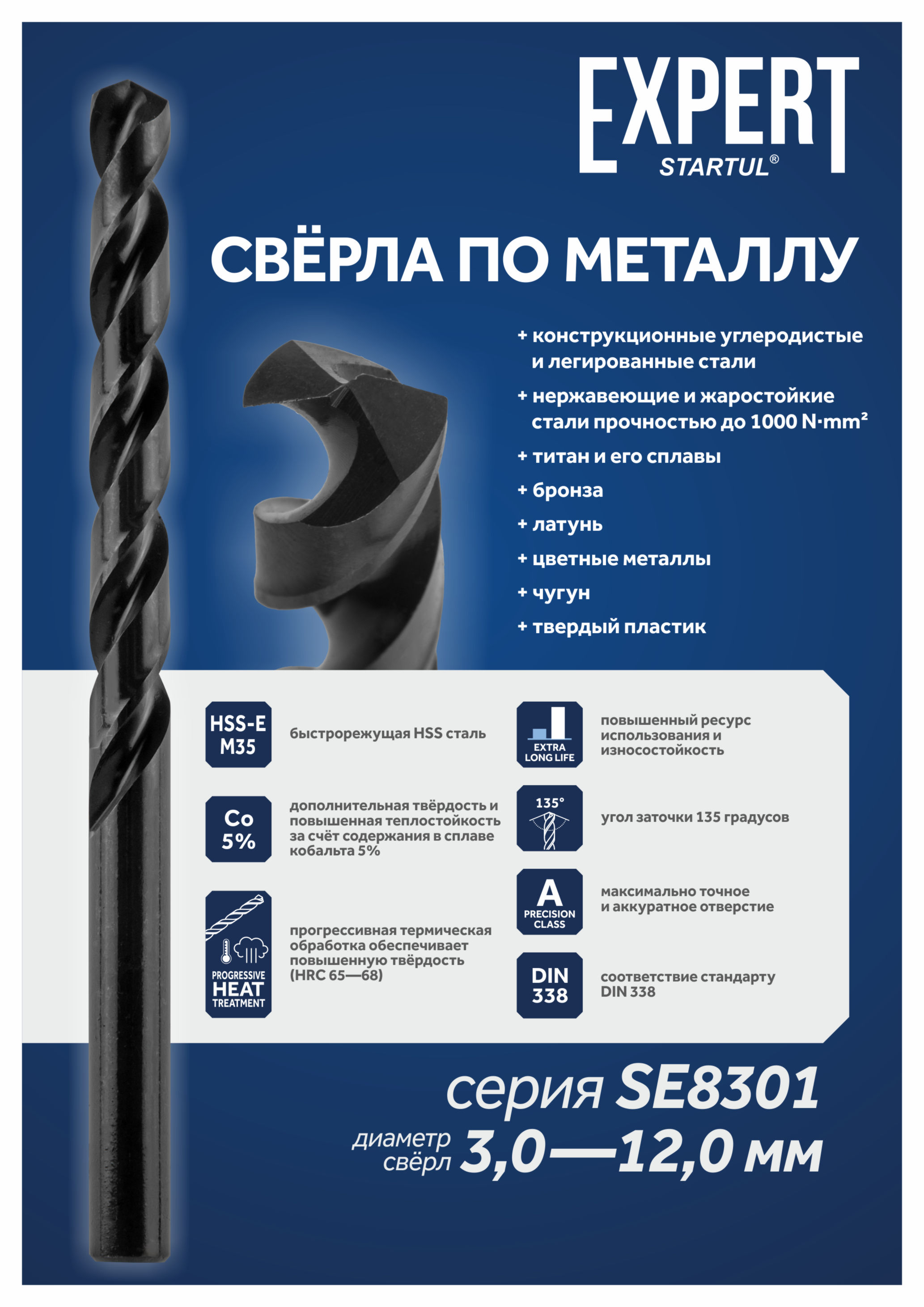 Сверло по металлу ц/х 6.5х63х101 мм HSS-Co Black EXPERT STARTUL (кобальт 5%)