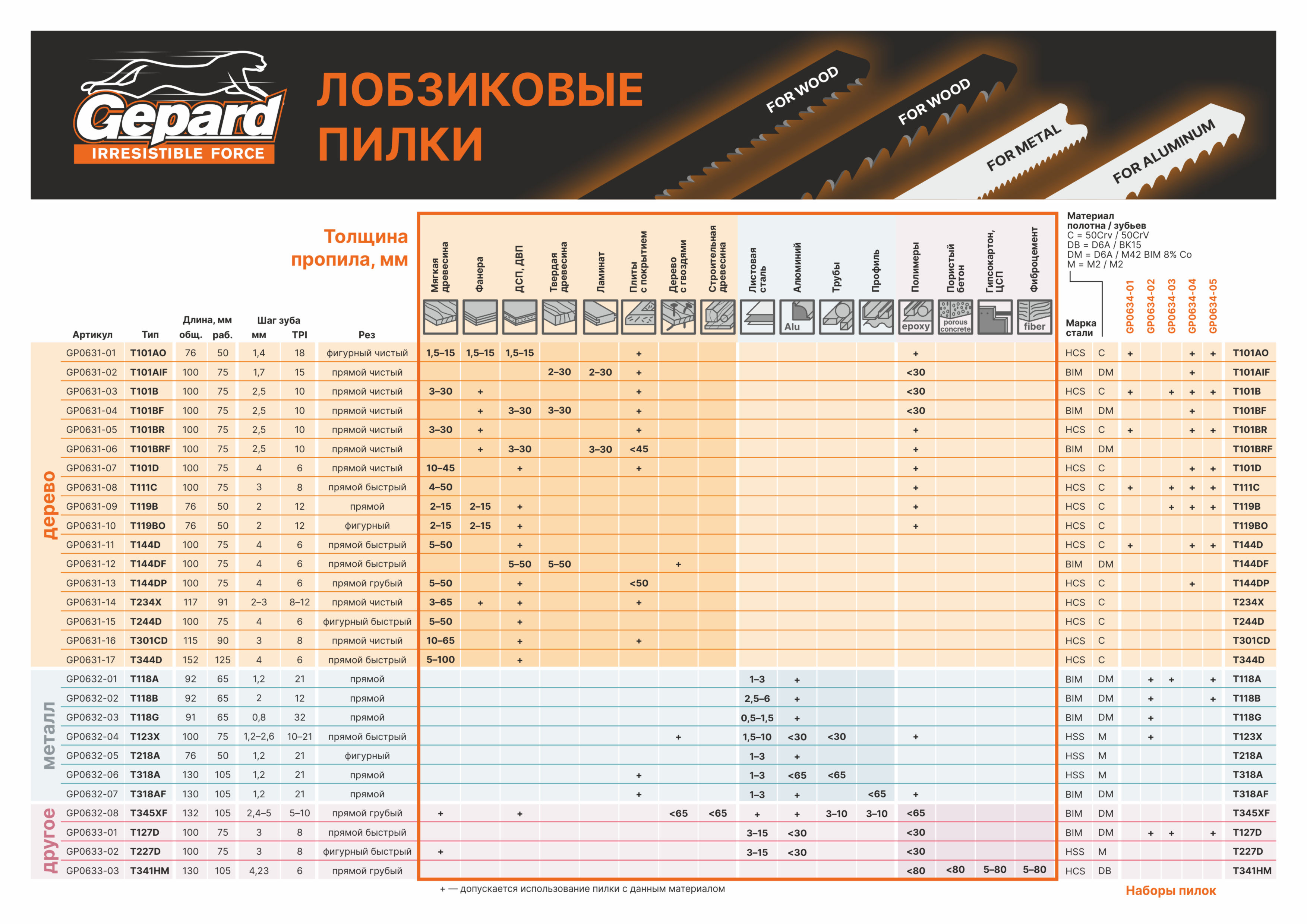 Пилка лобз. по алюминию T227D (2 шт.) GEPARD (пропил криволинейный, тонкий, быстрый рез)