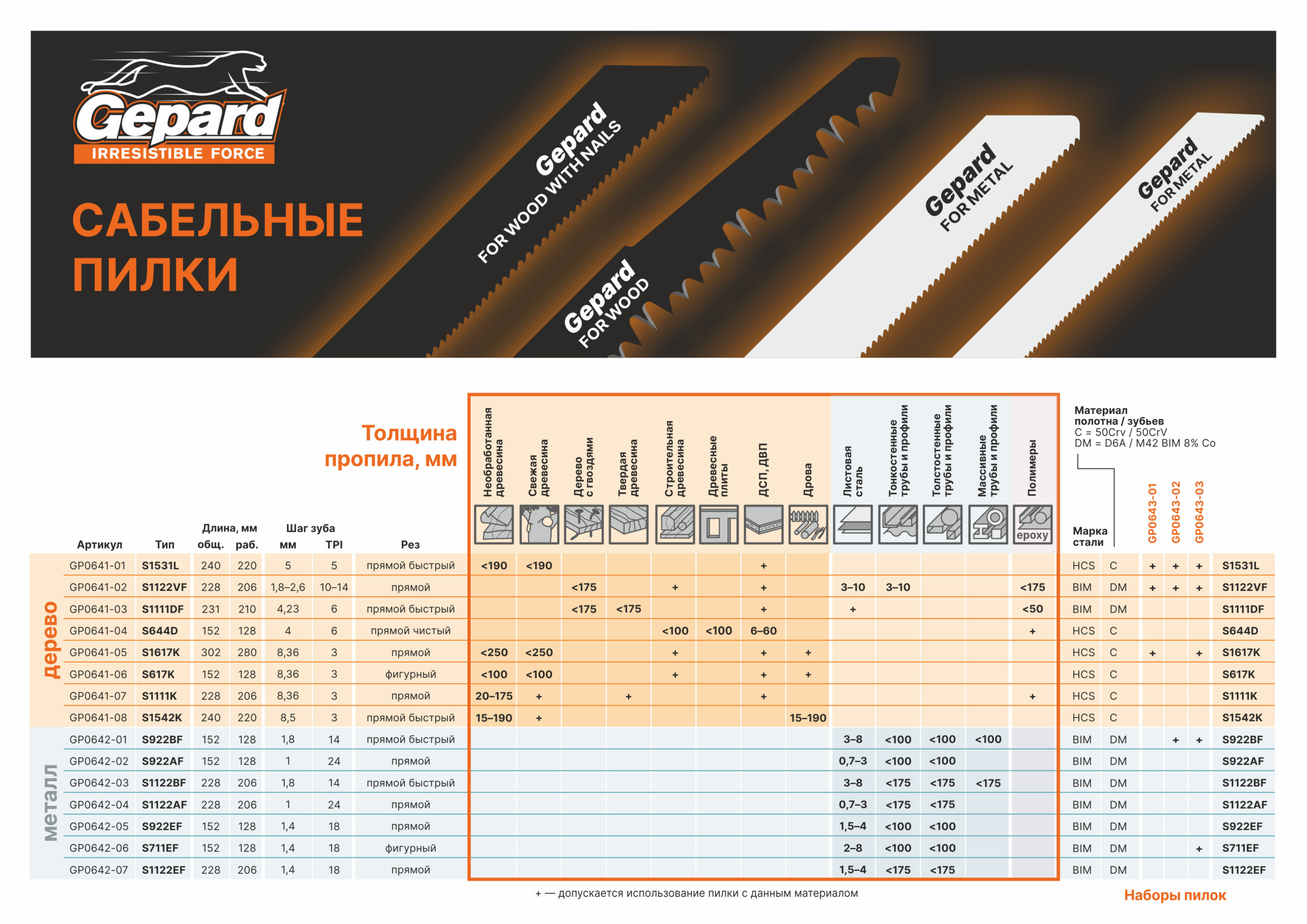 Пилка сабельная по дереву S644D (2 шт.) GEPARD (152мм, полотно для сабельной пилы, пропил прямой, чистый рез)