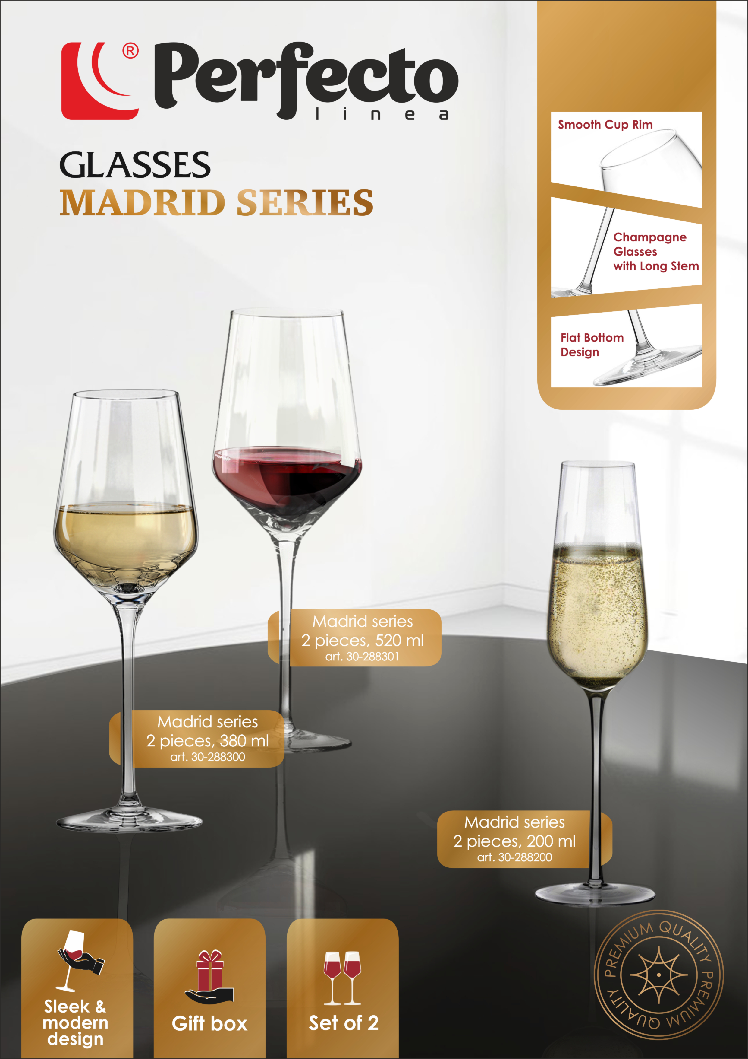 Набор бокалов для вина, 2 шт., 380 мл, серия Madrid, PERFECTO LINEA (Размер: 240х80 мм)