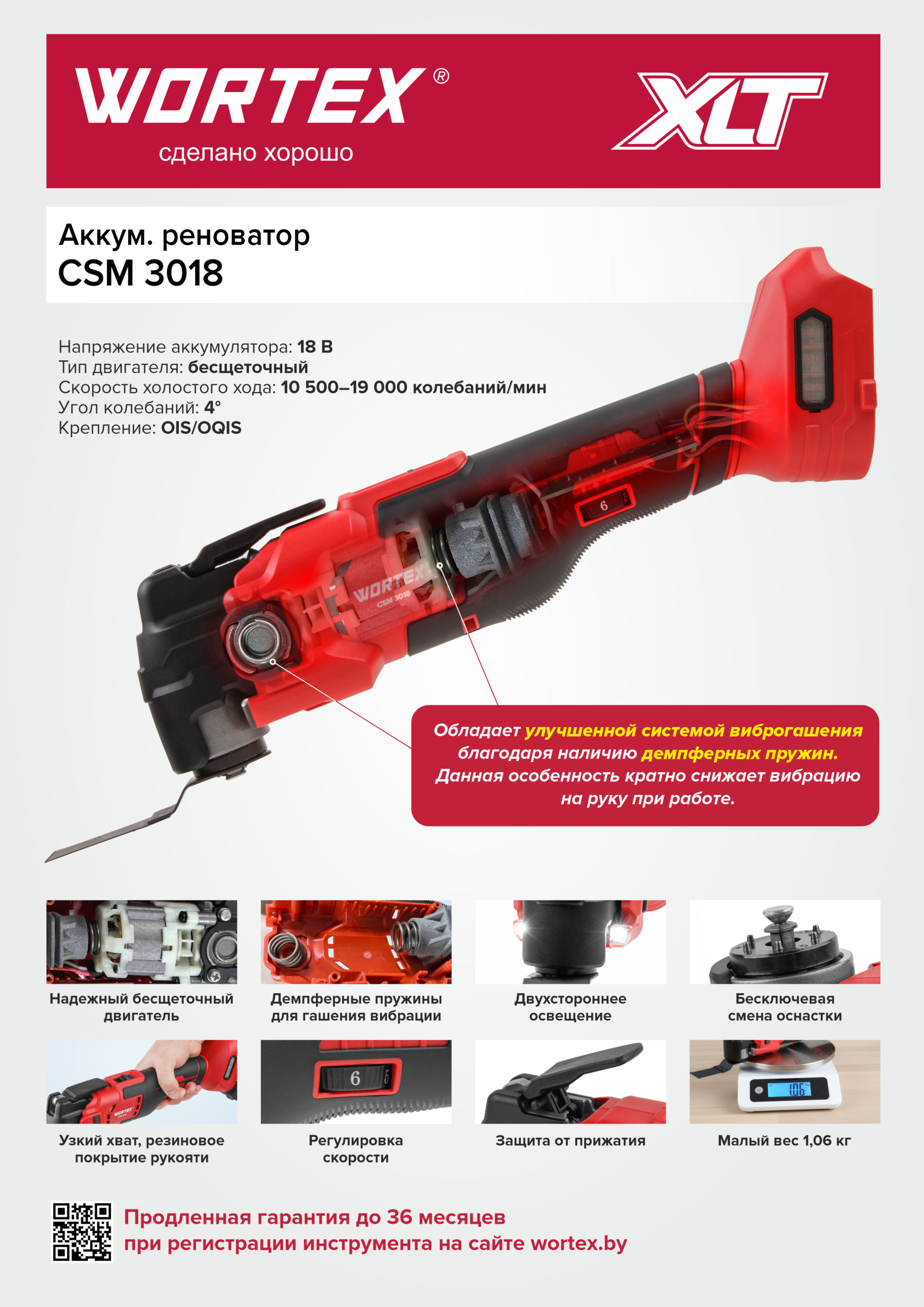 Аккум. многофункциональный инструмент (реноватор) WORTEX CSM 3018 в кор. ALL1 XLT + аксесс. SET (4 град., 10500-19000 кол/мин)