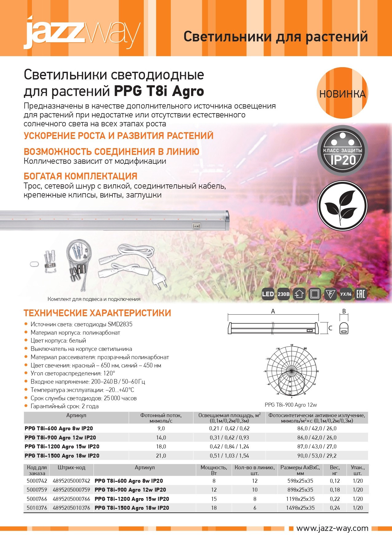 Светильник светодиодный подвесной 15 Вт PPG T8i-1200 Agro IP20 220В JAZZWAY (Агро лампа Для растений.)